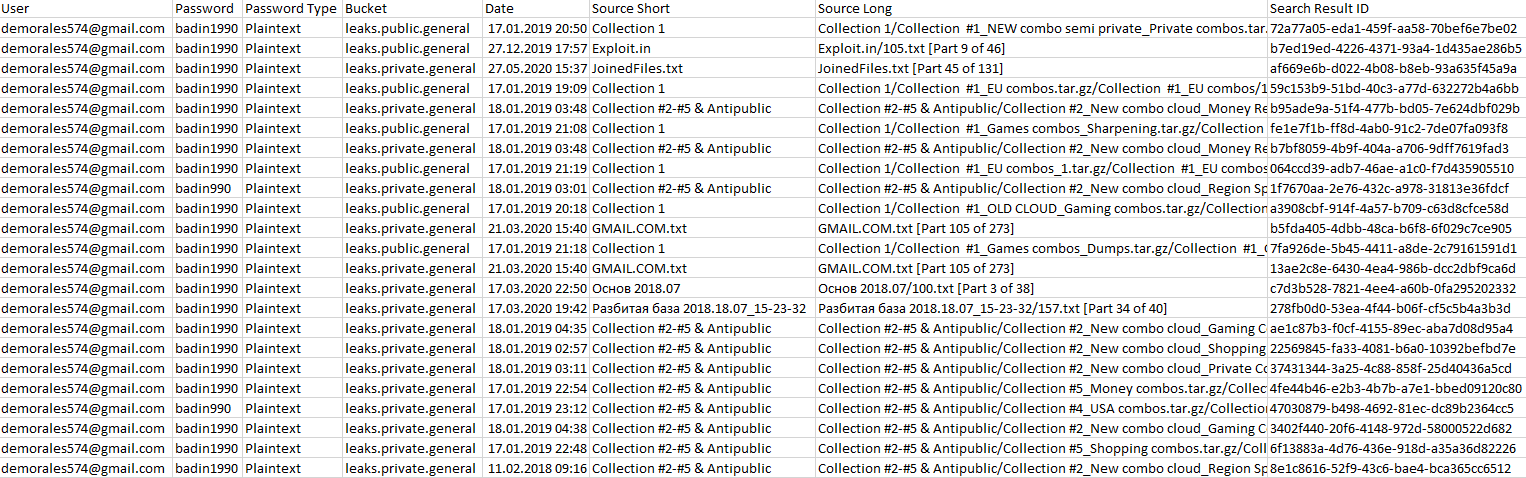 This allows analysts to go over hundreds of results and quickly identify duplicates and relevant and irrelevant findings. The screenshots below show the lookup for Dmitry Badin, a supposed GRU member who allegedly hacked the German Bundestag.